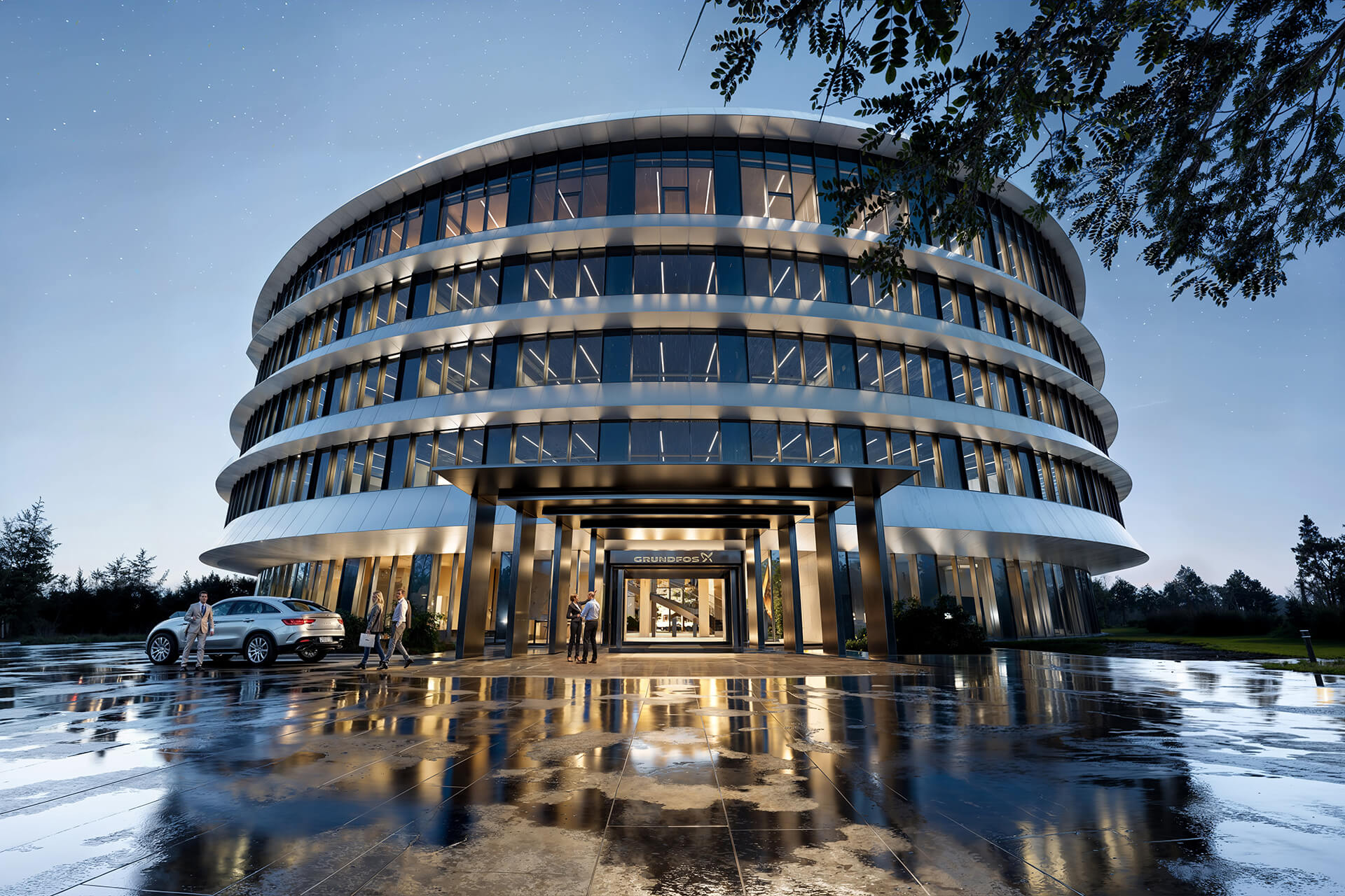 Det nye hovedkvarter bliver en integreret del af virksomhedens campus og vil fungere som en levende showcase for Grundfos’ egne energibesparende teknologier. Bygningen certificeres til DGNB Platin og er designet med fokus på at genanvende hver en dråbe vand på grunden – til gavn for både mennesker, planter og biodiversitet.